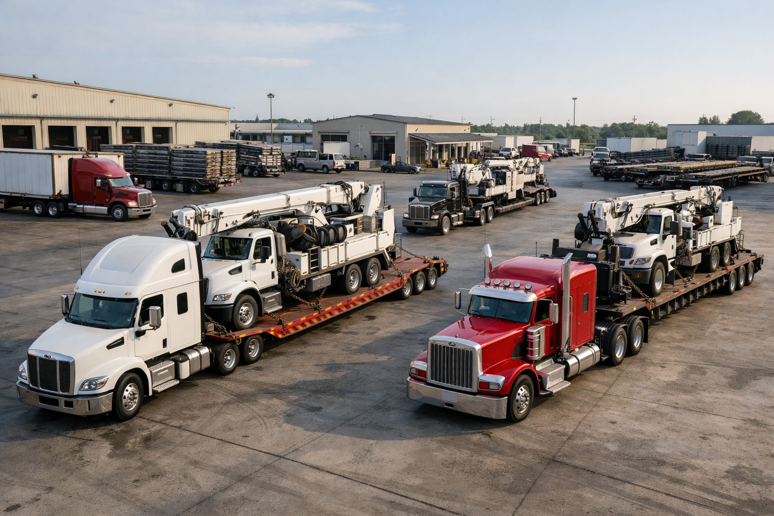 Most utility digger derricks are transported using lowboy or RGN trailers to accommodate height and weight restrictions. Smaller configurations may be moved via step deck or heavy-duty flatbed depending on total dimensions. Oversized units often require permit coordination and route planning to comply with bridge laws and clearance regulations.