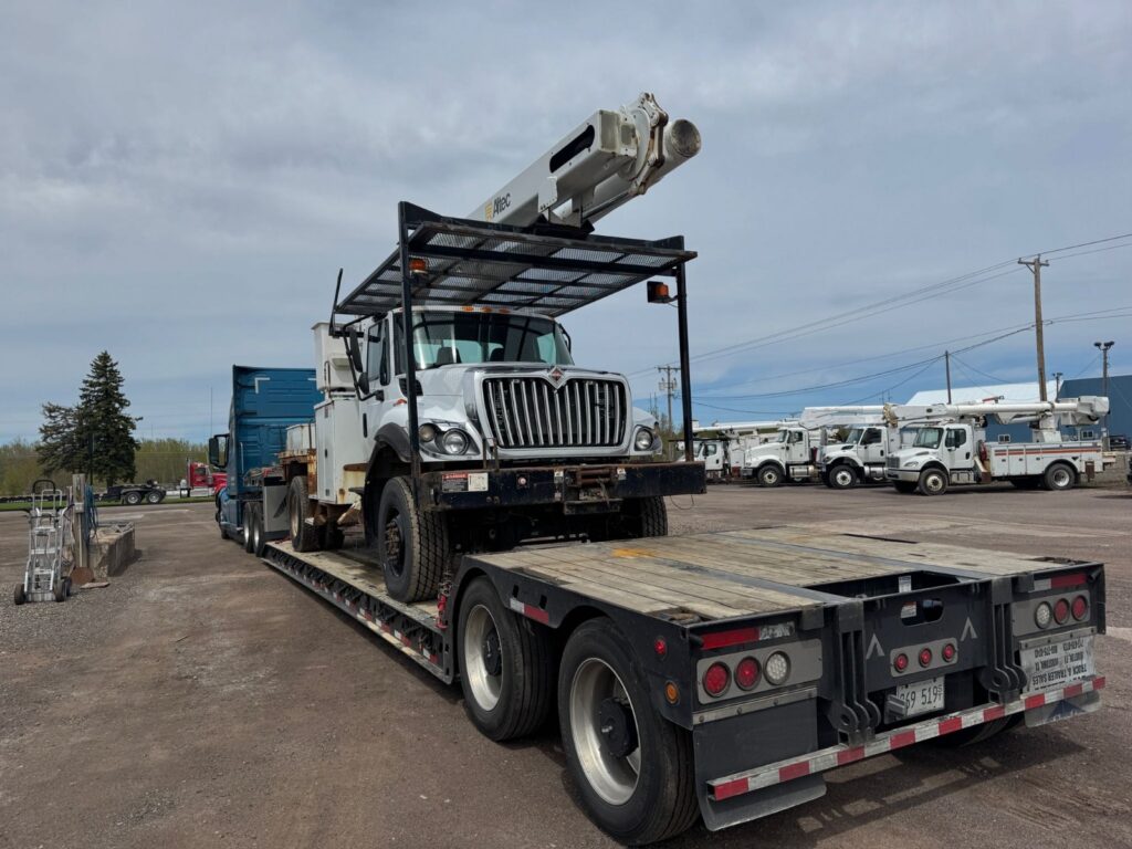 Professional bucket truck transport — safely hauling utility, service, and lift trucks with specialized trailers, insurance, and expert logistics.