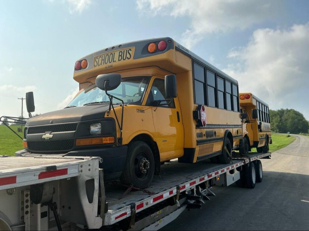 Professional bus transport — safely moving charter, school, and transit buses with specialized trailers, full insurance, and expert logistics coordination.
