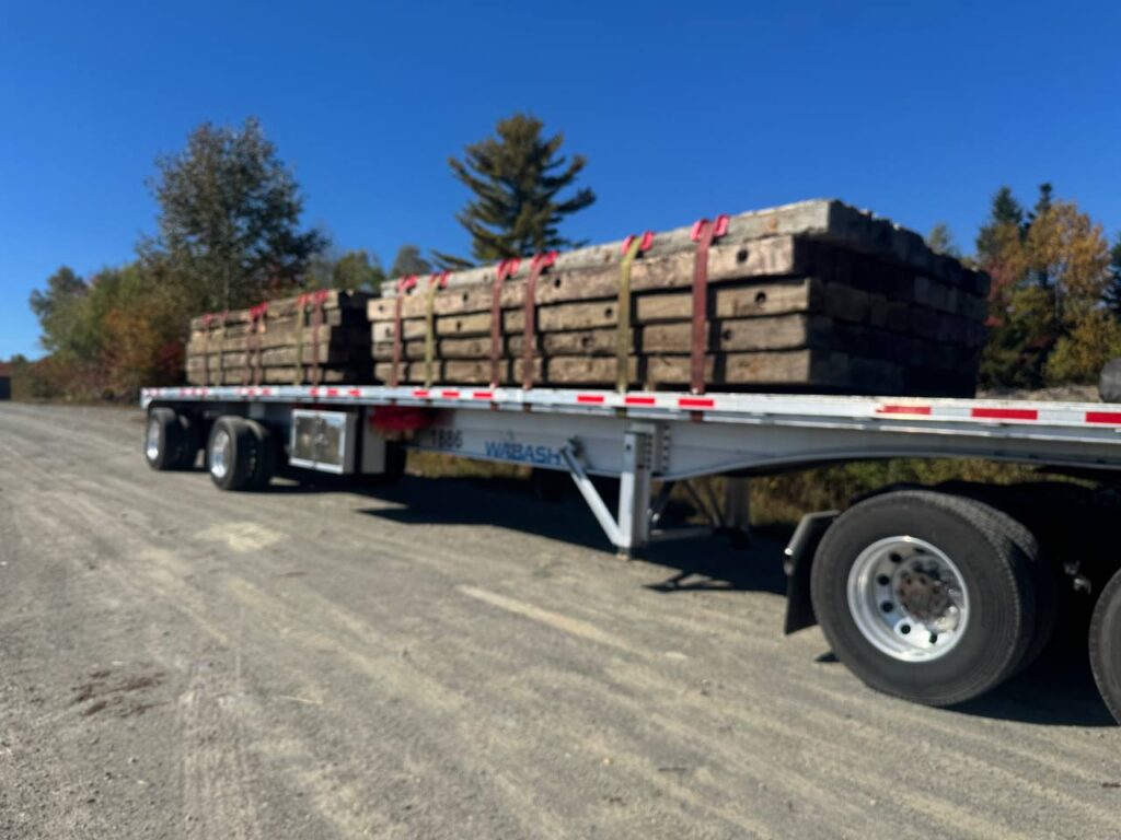 Professional timber mat and construction material transport — safely hauling beams, panels, and materials with specialized trailers, insurance, and expert logistics.